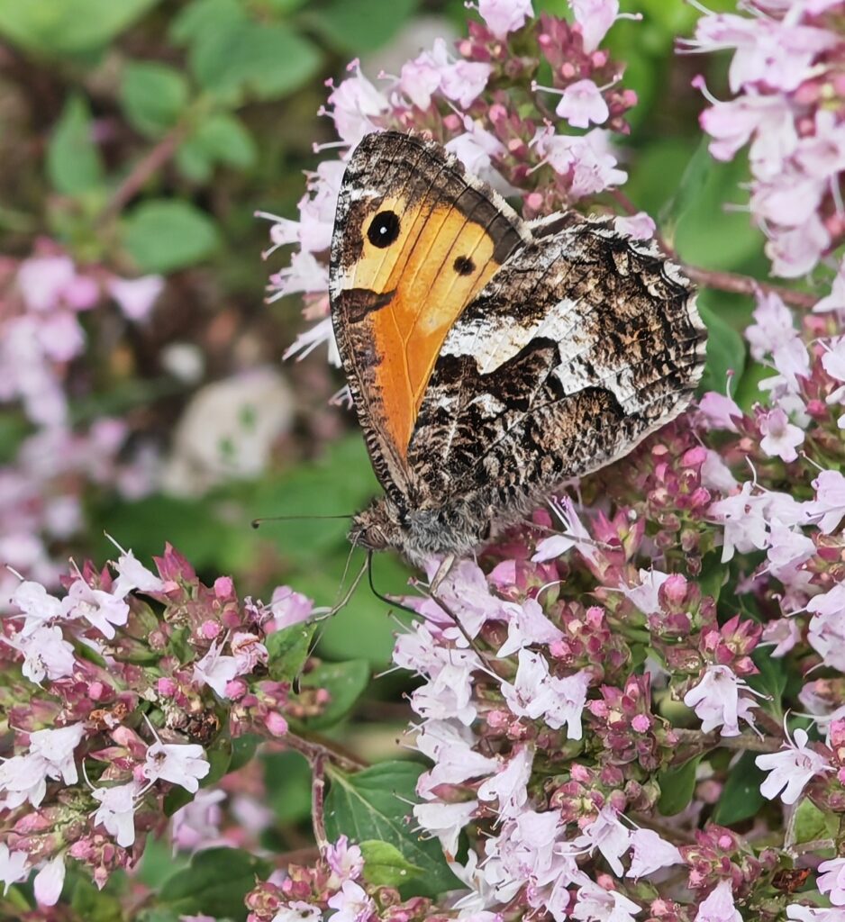R: Roßminze, Taubenskabiose, Bergaster, bei mir vor allem Thymian & Dost